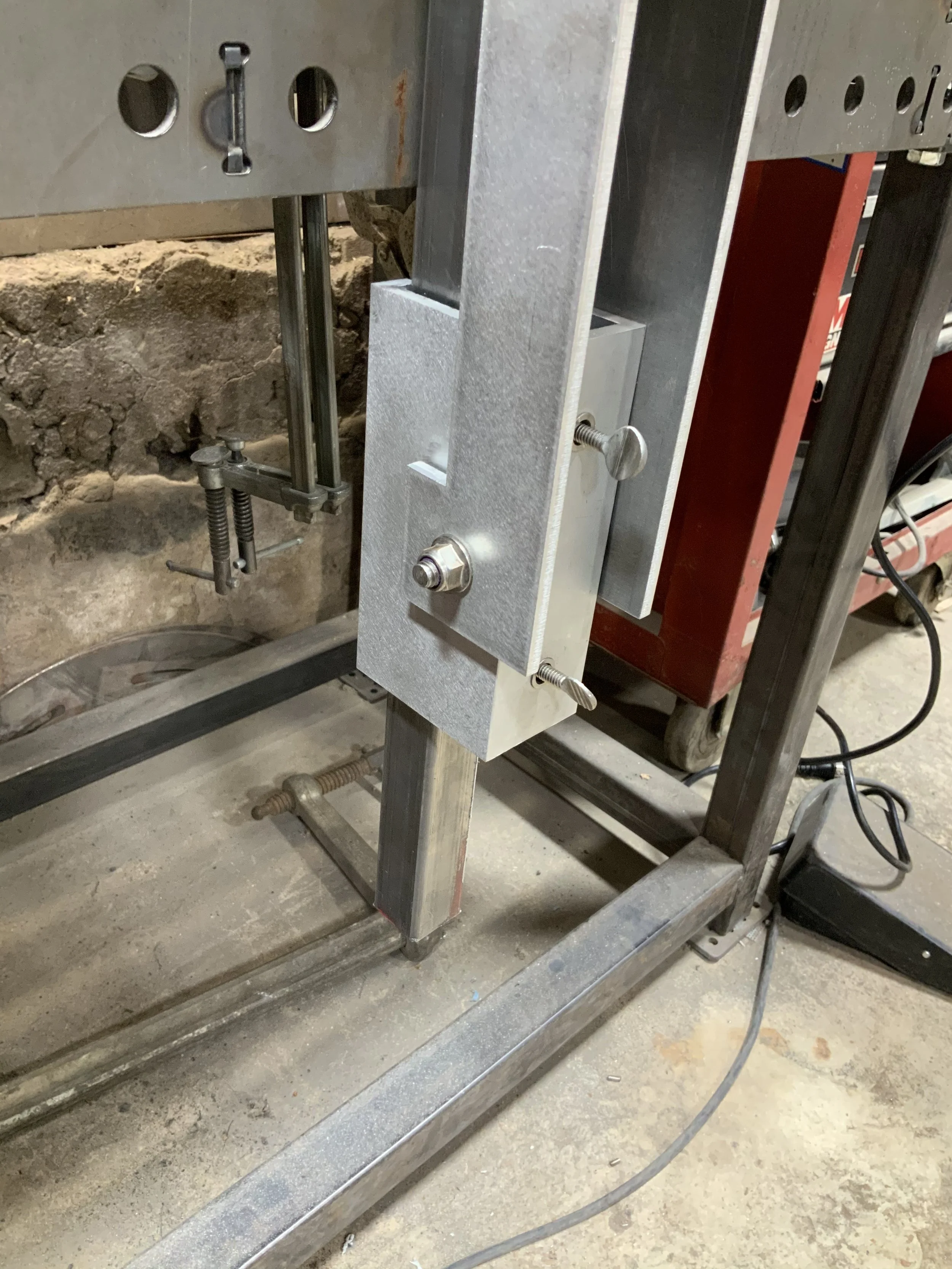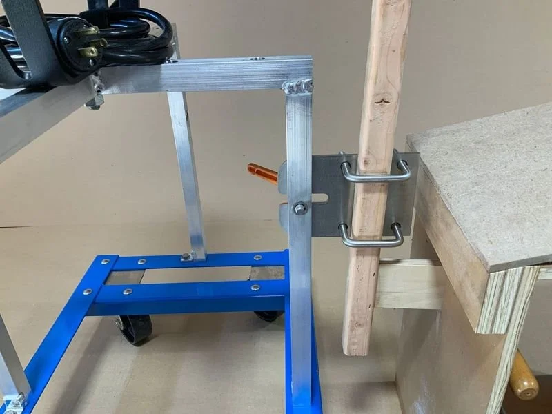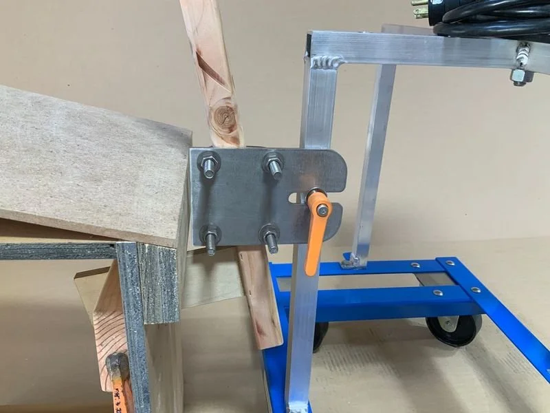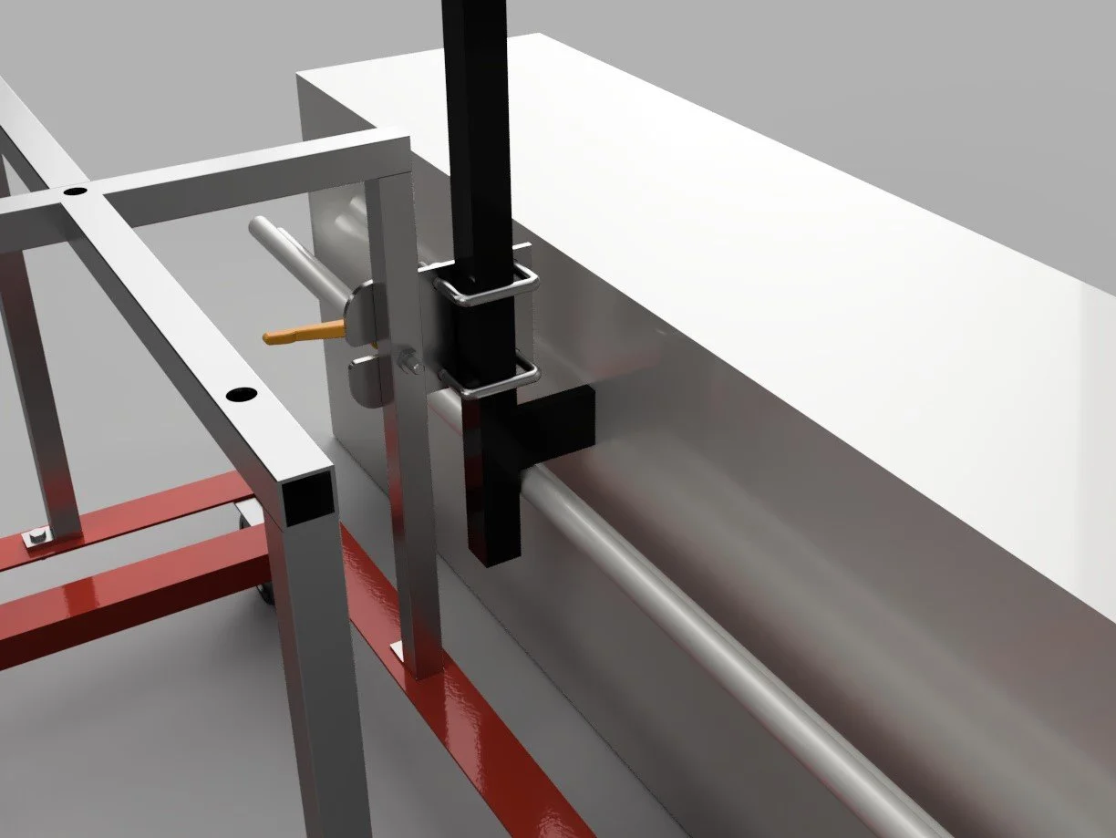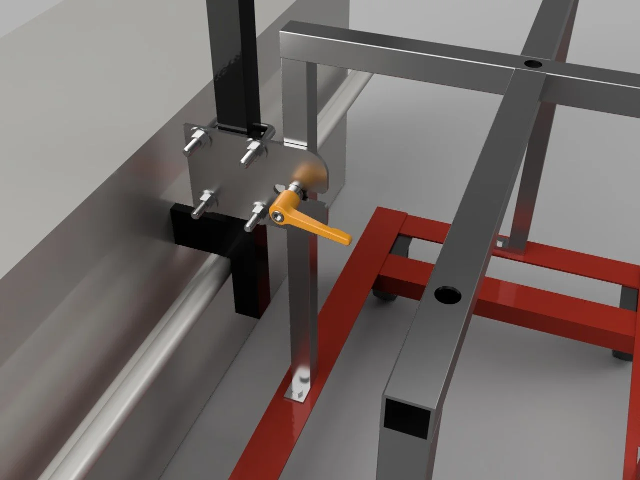 These brackets were designed to keep in mind that the spotlight would need to be fully mobile, but sturdy enough when attached in place to not move or become a hazard in inclement weather. We chose 6061 aluminum for the frame, a powder coated dolly, and stainless steel hardware all around. We used dielectric grease and rubber pads at all stainless steel to aluminum connection points to prevent galvanic corrosion.