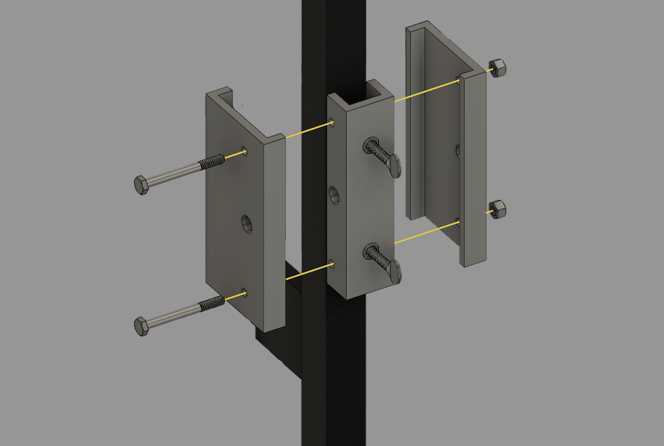 The design accounted for rooftop conditions, aiming requirements of the lights, and ease of installation and maintenance. Each bracket was engineered to ensure stability, repeatable alignment, and long term durability in an exposed environment, supporting consistent illumination of the building.